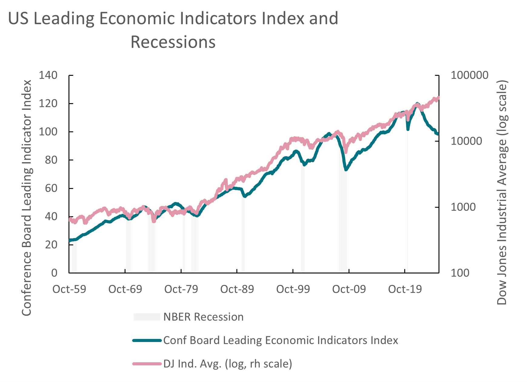 Halloween is here. If you want to get spooked, contemplate the chart below. I was inspired seeing a version of this on LinkedIn this week. It plots the US Conference Board’s Index of Leading Economic Indicators against periods of recession and the Dow Jones Industrial Average. The leading indicators index has been published since 1959 and its components include the Treasury yield curve slope, data on manufacturing new orders, jobless claims and credit growth. AI may be changing the rules, but one interpretation of this chart suggests we are in for a recession and a stock market correction. To paraphrase the witches’ chant from Shakespeare’s Macbeth – “double, double toil and trouble. Artificial intelligence and a stock market bubble”.