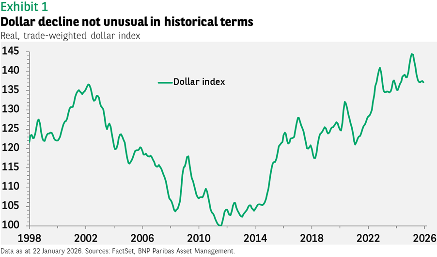 For all the headlines, the market impact of the Trump administration’s efforts to acquire Greenland were limited. At the low point for equity markets on 20 January, US and European markets were down just 2% compared to the 9% to 12% declines following Liberation Day in April last year. The gold price rose further, up 4%, as there are nonetheless longer-term implications for investors from the significant changes in geopolitics and global trade that continue to unfold.