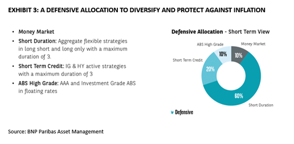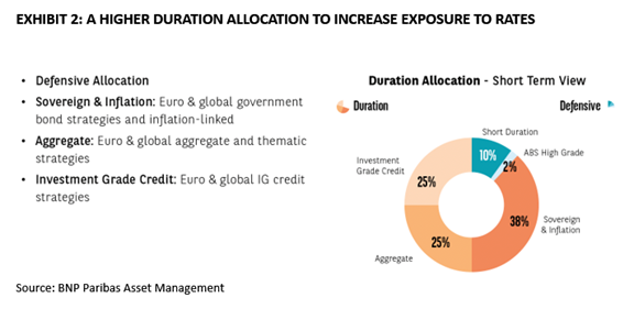 Tuttavia, potrebbe rivelarsi utile trasferire parte dell'esposizione ai titoli di Stato nominali verso titoli indicizzati all'inflazione e attivi a duration più breve.
