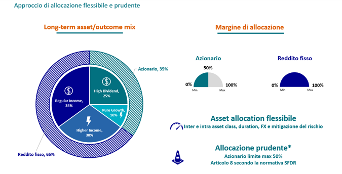 Obiettivo principale del fondo è generare un reddito regolare nel tempo, di circa il 3% annuo e, allo stesso tempo, accrescere il patrimonio investito attraverso un approccio prudente volto alla mitigazione dei rischi. “Per la gestione del rischio utilizziamo un approccio multi-livello: strutturale, tattico e opportunistico, rafforzato da strumenti quantitativi di riduzione dell’esposizione al rischio,” aggiunge il gestore.