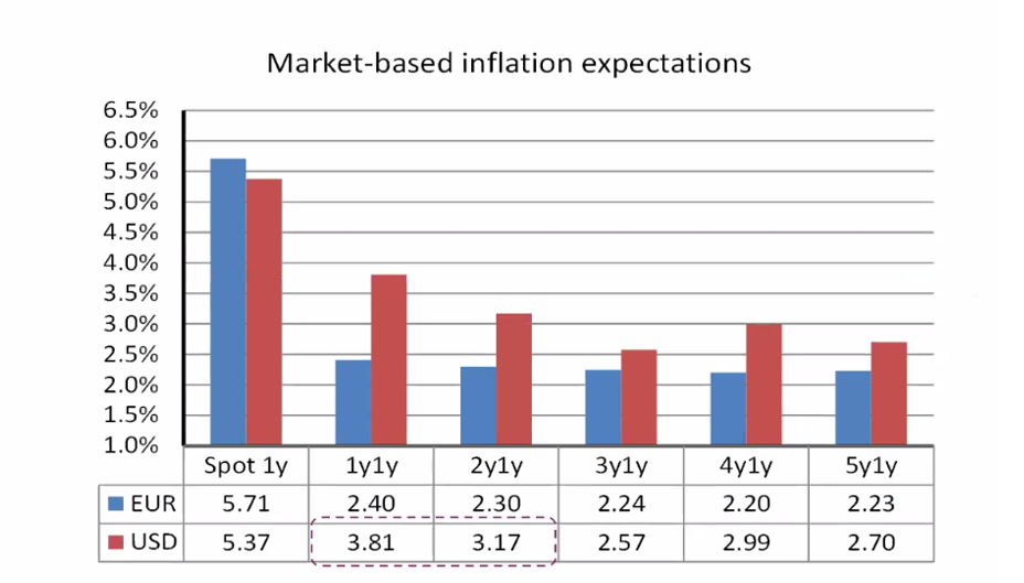 Aumenta l’inflazione stimata dal mercato tra 12 e 24 mesi (quest’anno sarà più alta in Europa che negli Stati Uniti):